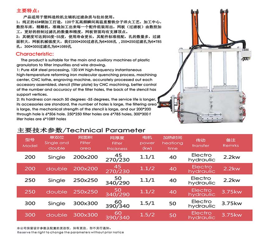 用途:产品适用于塑料造粒机主辅机过滤杂质与拉丝使用。