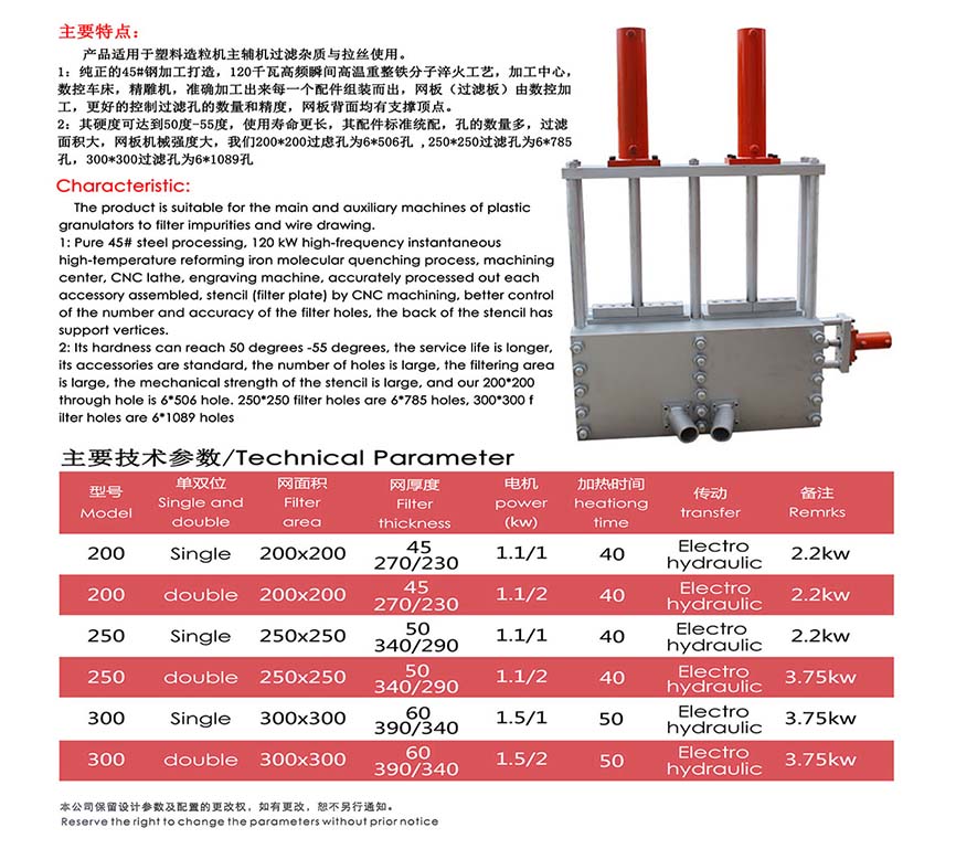 用途:产品适用于塑料造粒机主辅机过滤杂质与拉丝使用。