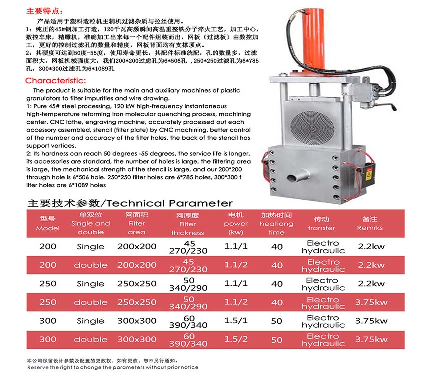 用途:产品适用于塑料造粒机主辅机过滤杂质与拉丝使用。