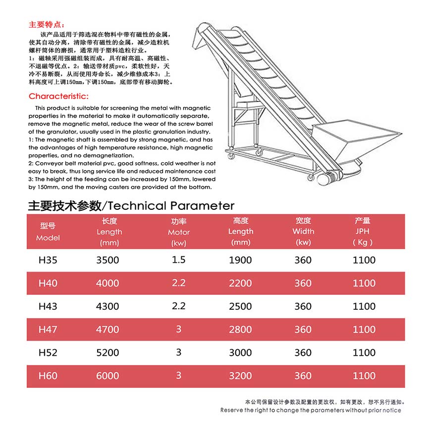 3:上料高度可上调150mm,下调150mm,底部带有移动脚轮。