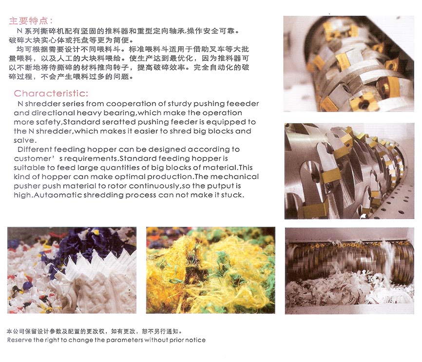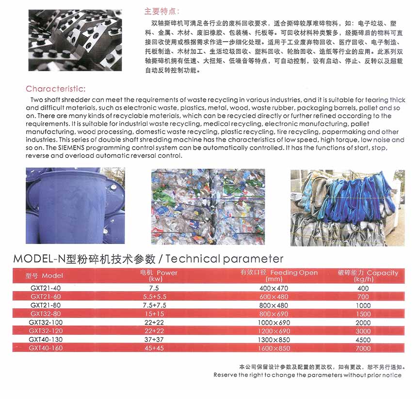 1:粉碎机操作方便,换到简便快捷,平行刀宽大的结构适合破碎大体积薄料产品。